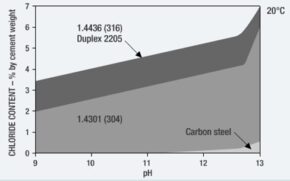 In case of corrosion resistant stainless steel rebar, no extra concrete cover should be necessary* and an important saving in concrete and weight could be achieved.