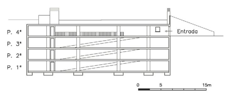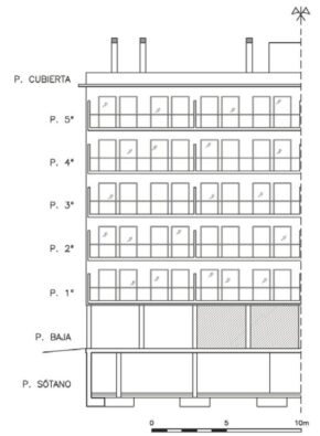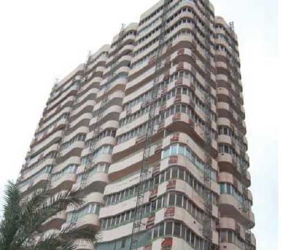 It describes the repair of the facade of an 18-storey apartment building in Alicante, Spain.(see front view, below) The 30 year-old building is located close to the sea. Cracks in the façade panels were observed and required replacement by new ones reinforced with stainless steel.