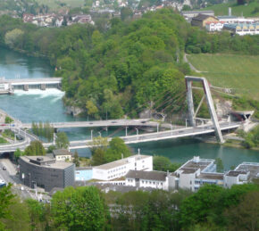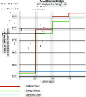 The Schaffhausen bridge across the river Rhine was completed in 1995. The bridge is required to resist to atmospheric corrosion and de-icing salts. The bridge is expected to last 80 years without loss of structural integrity and without significant maintenance.