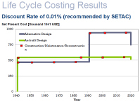 | 100-year life cycle cost as a percentage of initial cost of “base” structure | 111.48% | 108.02% | 103.88% | 103.74% | 101.40% |