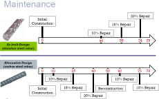 - Epoxy coated carbon steel: less extensive repairs would nevertheless have to be carried out every 25 years with reduced traffic disruption