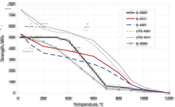 An efficient way to improve the fire resistance of reinforced concrete is to use stainless steel rebar. Stainless steels retain their mechanical properties better than carbon steel at elevated temperatures.