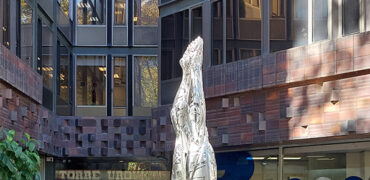 It is a temporary urban exhibition of stainless steel sculptures located in Madrid's Barrio de las Letras.