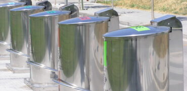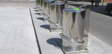 These attractive stainless steel waste disposal units stand on top of an underground container system which hides the waste below street level, thus creating a positive environmental impact by overcoming the risks of mishandling waste disposal bins, or failure to empty the bins.