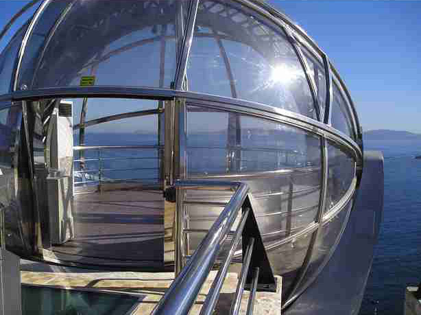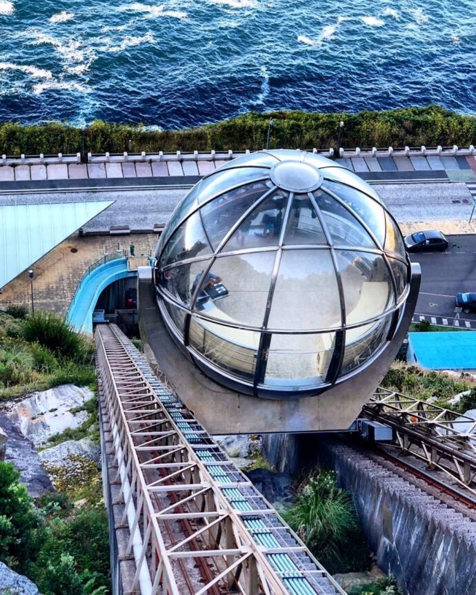 This Panoramic Lift in La Coruña, Spain, carries people from the Paseo Marítimo of Los Rosales El Portiño, to the summit of the Monte de San Pedro. The lift provides fantastic views over the Atlantic and the City.
