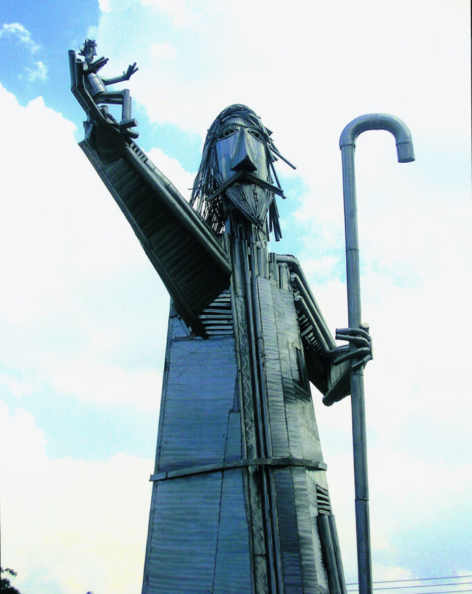 St. Joseph is the Patron Saint of the city. The statue is made of 300 series stainless steel scrap and is 10 meters high.
